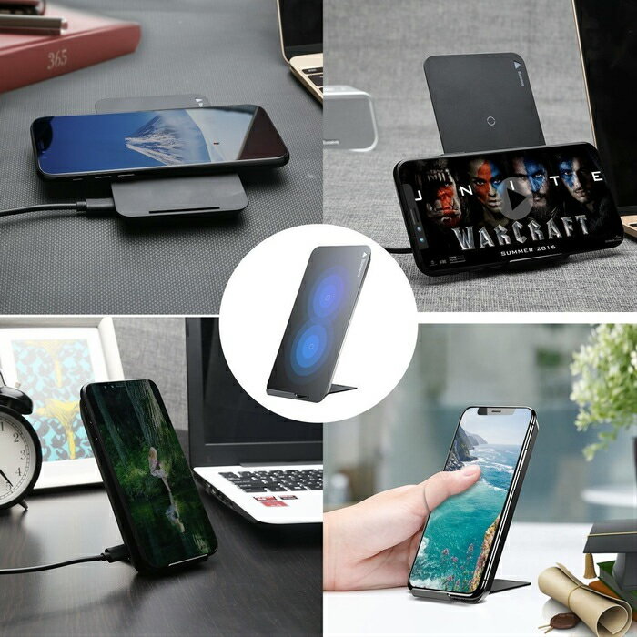 【広い充電面積】シングルコイルの無線パッドとは異なり、組み込まれた二つのコイルは、より広い充電面積を与え、携帯を充電器の真中に置くことで、充電になる時間を節約します。