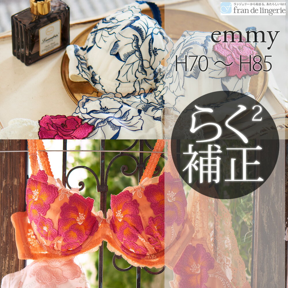 【らくらく補正ブラ】【emmy】【アンダー80】 emmy 〜 エミー 〜 ブラジャー (fran de lingerie) フランデランジェリー レディース 女性下着 単品 ブラ 補正ブラジャー 大きいサイズ △胸 ひまわりバスト