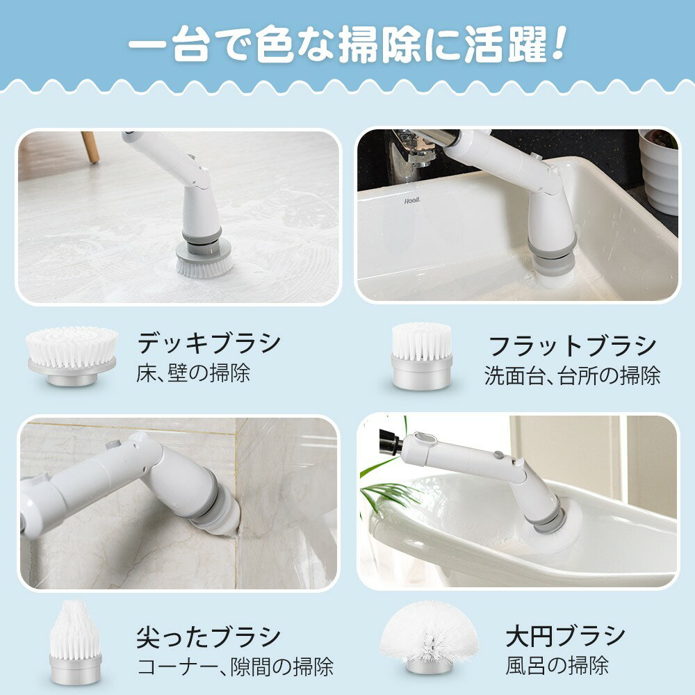 【使い分けるブラシ付き、どこでもピカピカに】 ※使い分ける四種類のブラシを付属しており、清掃したい所によって、適用なブラシが自由に選択できます。